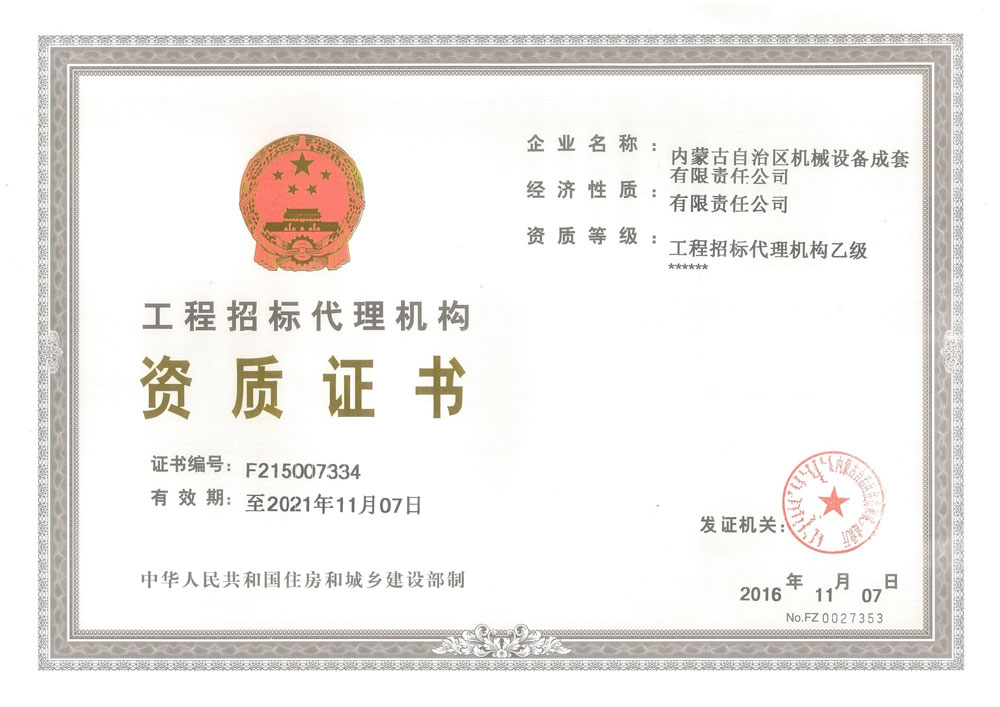 中央投資項(xiàng)目招標(biāo)代理機(jī)構(gòu)甲級資格證書
